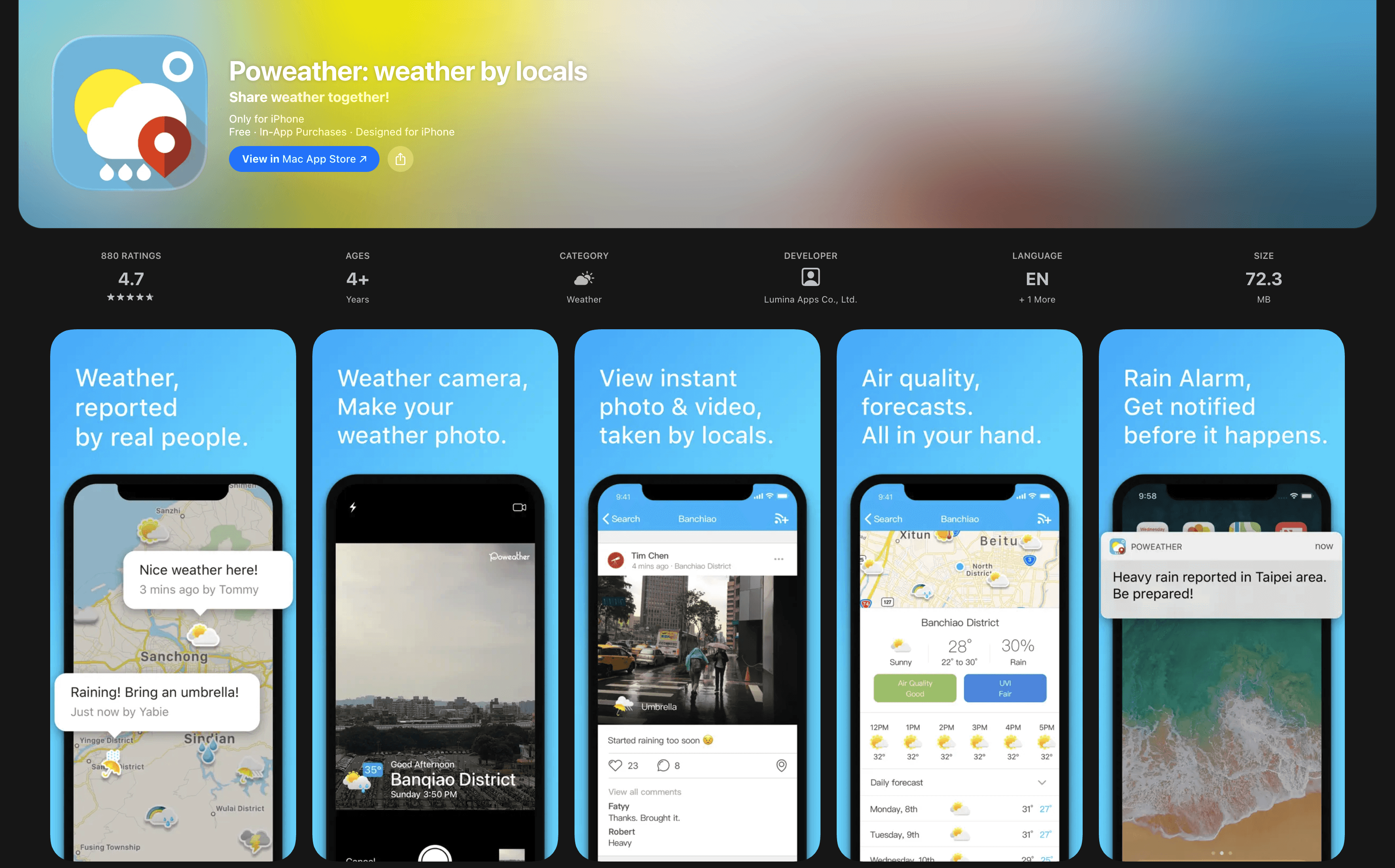 Back in school, I co-founded a side project called PoWeather, a crowdsourcing weather app released in 2012. It garnered over 30k downloads in the first two weeks and frequently ranked in the top 10 weather apps in Taiwan. Although we didn't secure the final funding after pitching at the AppWorks accelerator, the experience was invaluable. Looking back, I was ambitious but still learning the ropes of the UX process. That project taught me the end-to-end experience of turning ideas into a product and ignited my passion for building products as a UX designer.