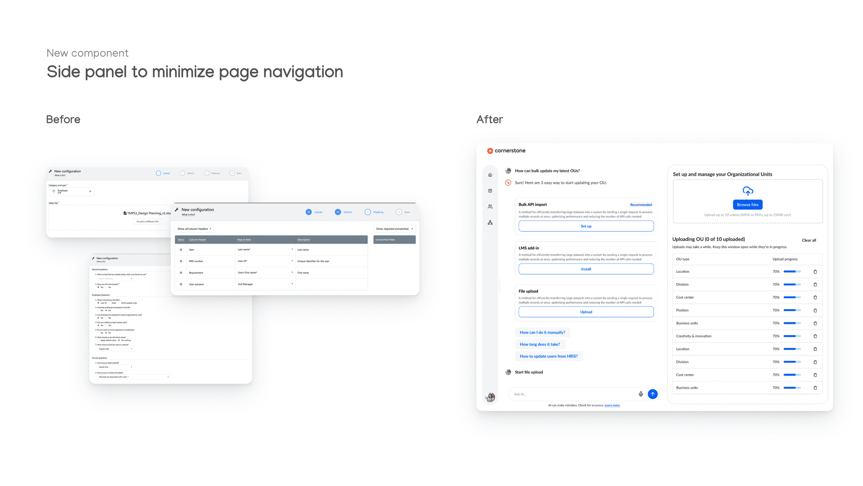 Implementing a centralized AI design patterns & components ensured cohesive experiences and eliminated redundant development efforts.